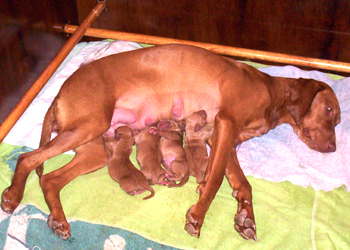 a las 18 h.,Chonchy ni jadeo, tres contracciones por cachorro y listo.
